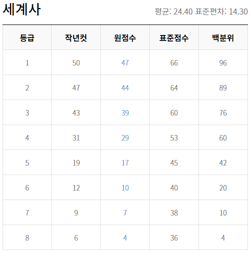 <2022년 대학수학능력시험,수능 세계사 등급컷>