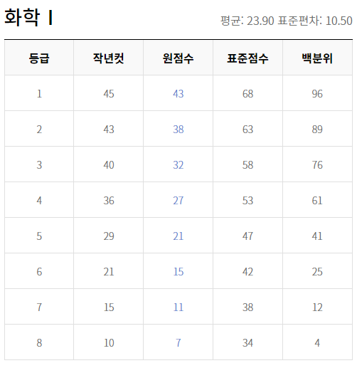 <2022년 대학수학능력시험,수능 화학1 등급컷>