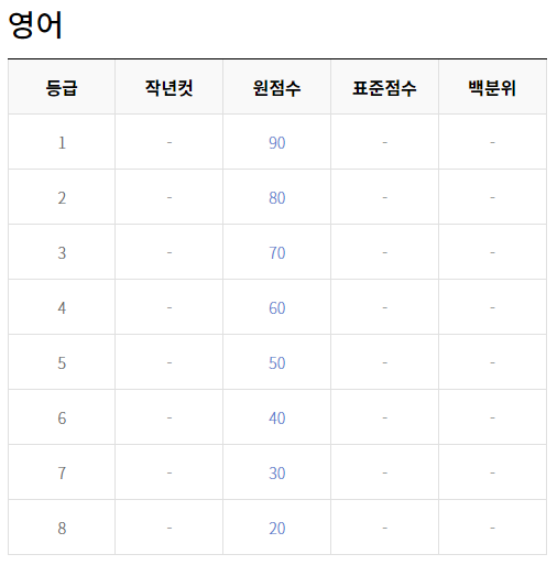 <2022년 대학수학능력시험,수능 영어 등급컷>