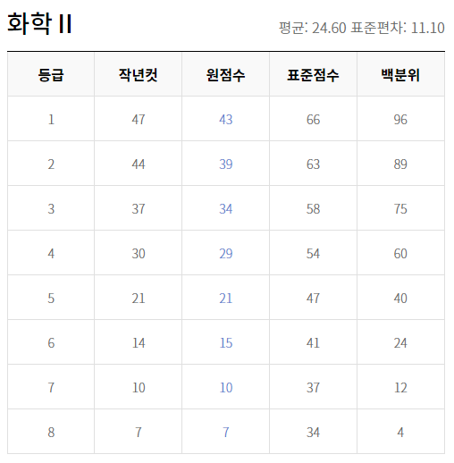 <2022년 대학수학능력시험,수능 화학2 등급컷>