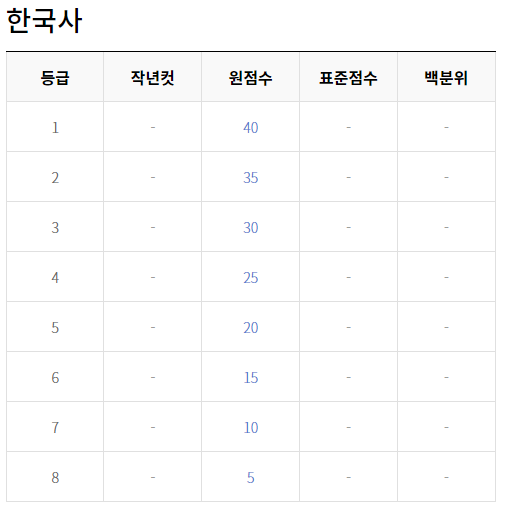 <2022년 대학수학능력시험,수능 한국사 등급컷>