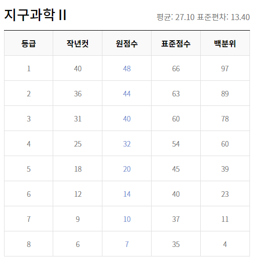 <2022년 대학수학능력시험,수능 지구과학2 등급컷>