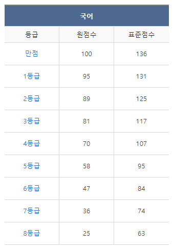 <2023년 3월 고1 모의고사/학력평가 국어 등급컷>