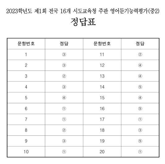 2023년 제1회 중2 영어듣기평가 정답.pdf