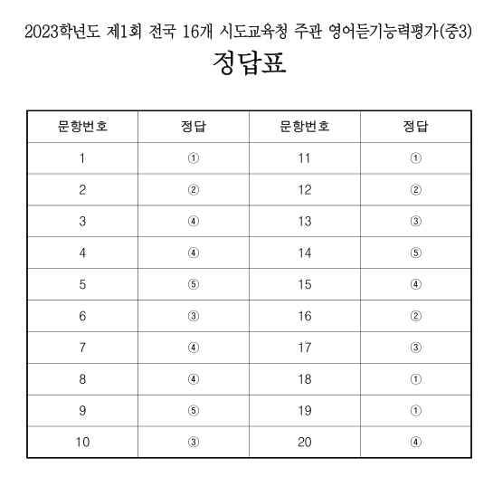 2023년 제1회 중3 영어듣기평가 정답.pdf