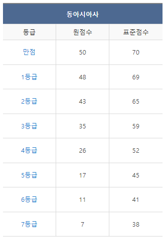 <2023년 4월 고3 모의고사/학력평가 동아시아사 등급컷>