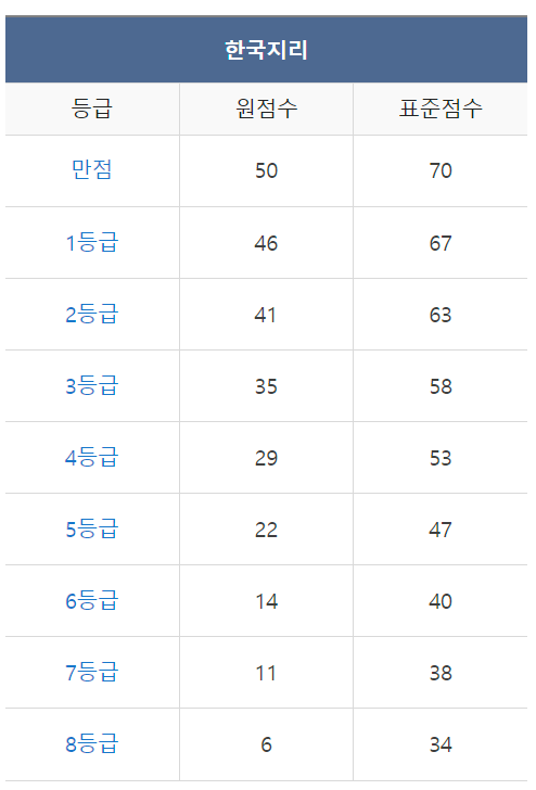 [2023년 6월 고2 모의고사/학력평가 한국지리 등급컷]