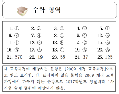 1. 경찰대 1차 시험은 경찰대 입학을 위해 시행하는 시험으로 자세한 내용은 경찰대학교 공식 홈페이지에서 확인할 수 있습니다. -바로가기- 2. 모든 파일은 PDF로 업데이트 되고 있습니다. PDF뷰어가 없으신 분은 자료실에서 다운받아주시기 바랍니다. -자료실 바로가기- 3. 모든 문제지와 정답의 저작권은 경찰대학교에 있습니다. 4. 경찰대 해설의 경우 비상에듀에서 얻고 있습니다. 더 많은 정보는 비상에듀를 참고하시기 바랍니다. -바로가기- |