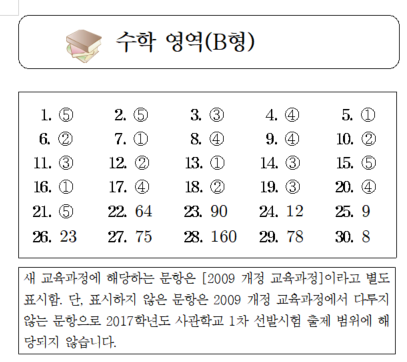 2015년 사관학교 수학B 정답(2016학년도 사관학교 수학B 정답)