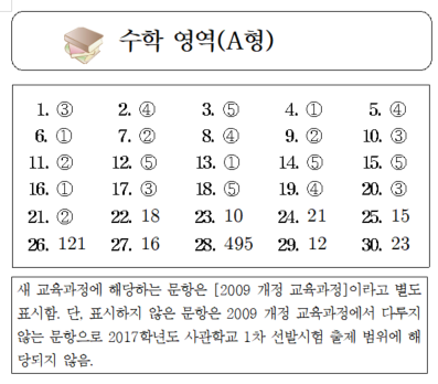 2015년 사관학교 수학A 정답(2016학년도 사관학교 수학A 정답)